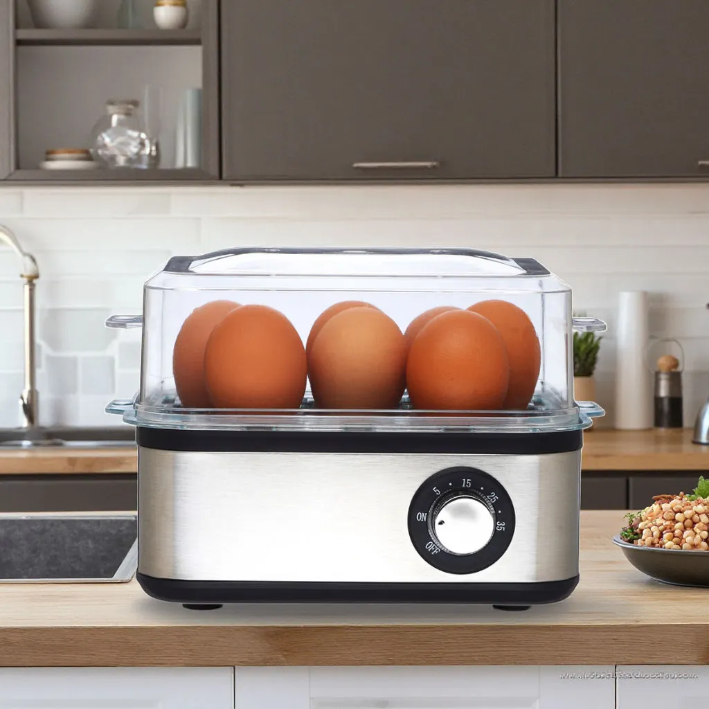 Cook perfect eggs with ease using this electric egg cooker and steamer featuring automatic temperature adjustment and a durable stainless-steel housing. Ideal for boiled, poached, and steamed eggs, it delivers fast, consistent results for your breakfast or meal prep.